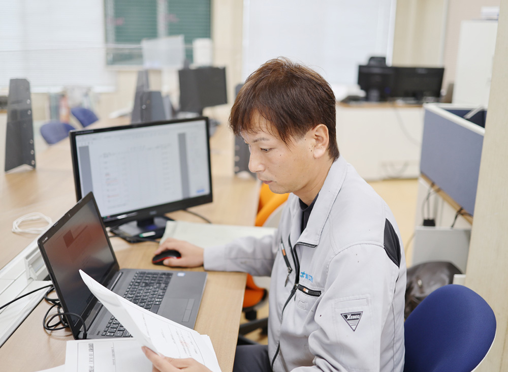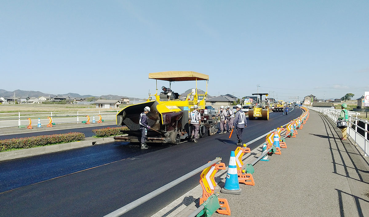 道路舗装の専門部署として、多くの専門知識と特殊技能をもった社員が舗装工事に従事しています。主要道路、農道、駐車場の舗装から、補修・施工まで幅広く手掛けます。