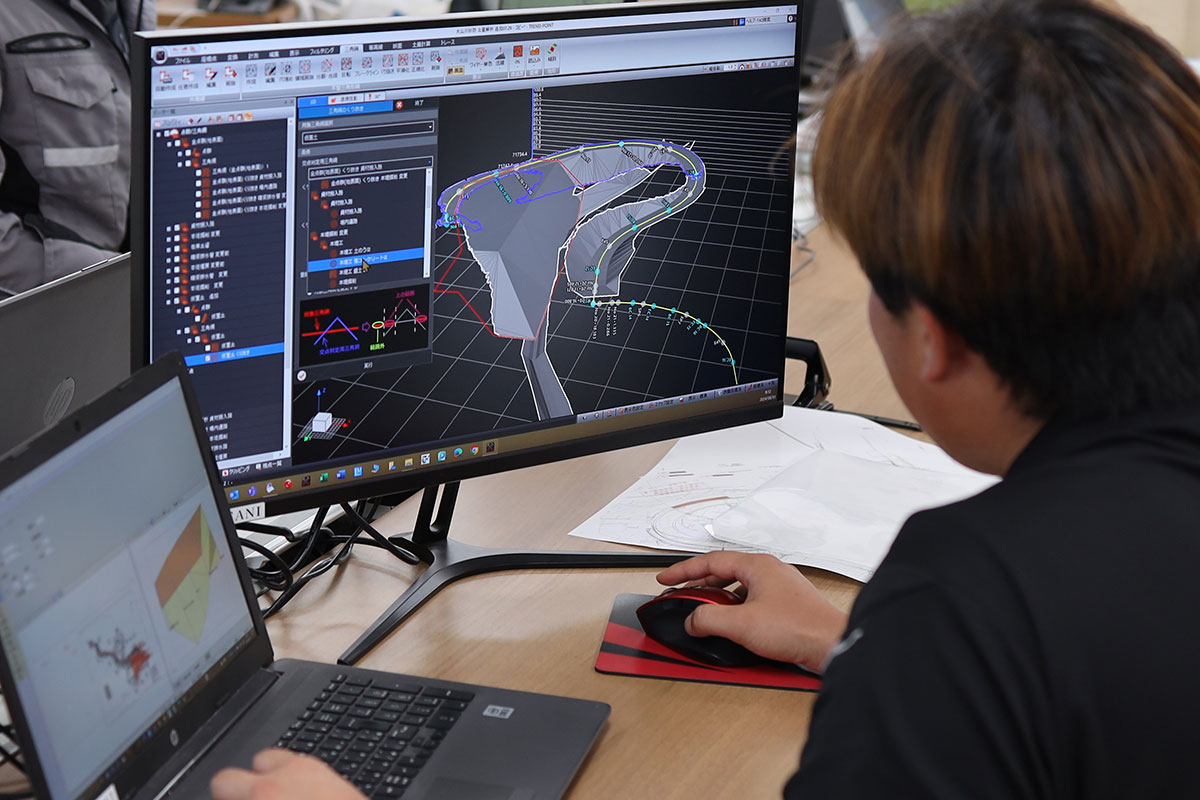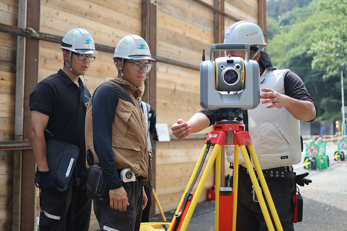 社内教育も推進しており、施工管理希望者には測量計算や建設CADに関する教育、土木施工管理技術検定合格に向けた教育を行い、作業スペシャリスト希望者には、各種作業手順や道具の使用方法に関する教育、油圧ショベルやブルドーザー、移動式クレーンやローラー等の大型機械の運転資格取得に向けた教育を行っています。